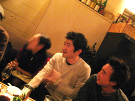 ▼同窓会のあと、数人で軽く腹ごしらえをした後、北条ダイニングへ。くるみ、話の最中に爆睡。これっ(笑)。「そーいや去年は同窓会の後ルームに流れたなぁ、今年はやめとこー。」なんて思ってたら、帰りにルームの前で見事にスーに捕まる。金曜日のTJCFのアフターパーティーやってました。